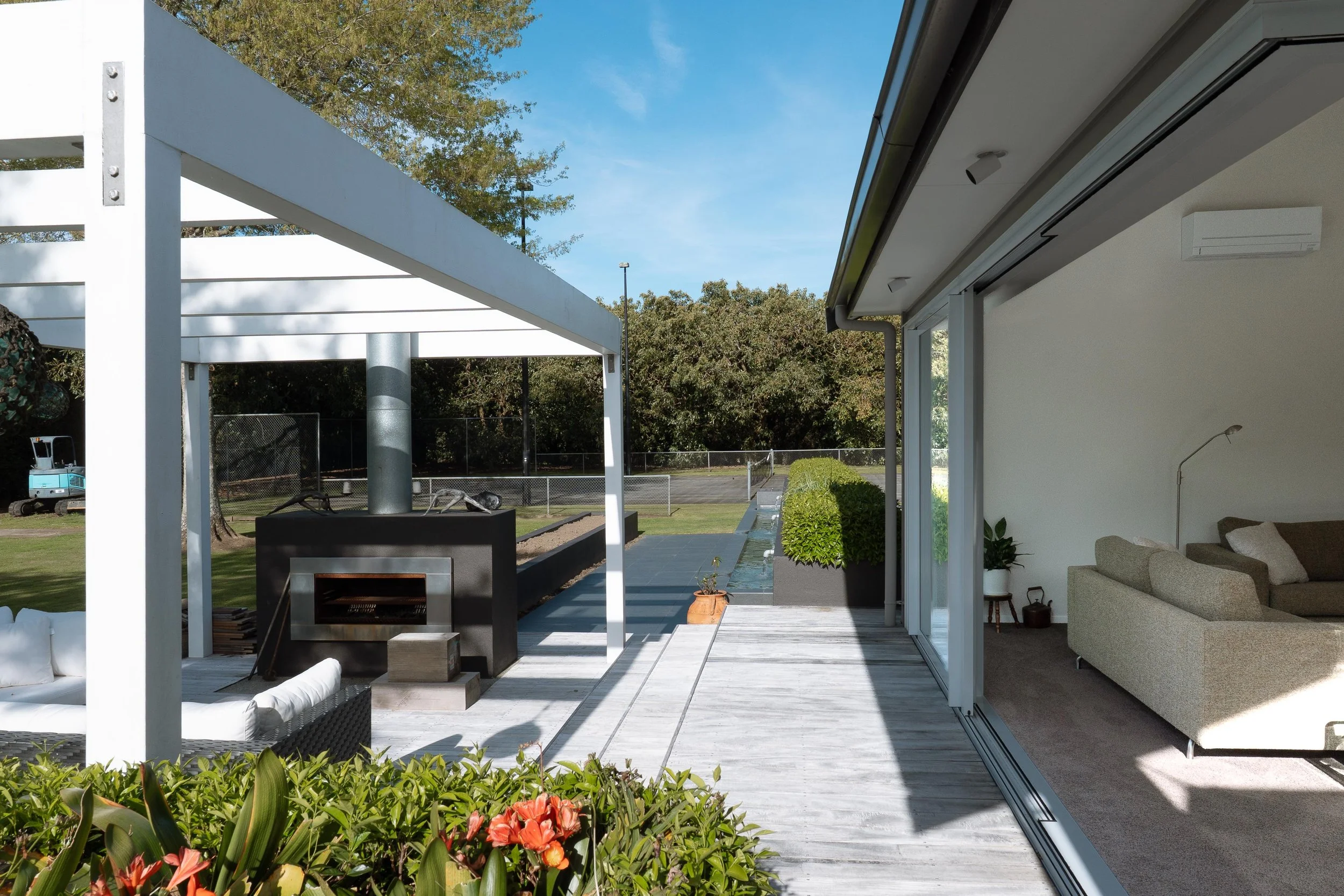 A steel box frame and connecting beam were introduced to support a full corner opening, allowing for large sliding and stacking doors to transform the living and entertaining end of the house. The result is a more open, practical space that extends directly to the outdoor area.